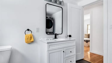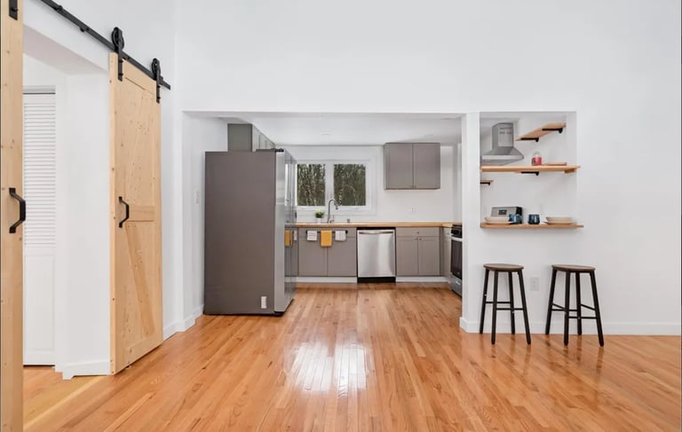 Embellished with brand-new windows and equipped with state-of-the-art appliances, this property ensures a truly turnkey living experience. Step into the open-concept living room, seamlessly flowing into a modern kitchen boasting abundant storage and butcher block counter space. The centrally located large bathroom showcases a tasteful design, featuring a new tub and shower and a convenient washer and dryer. Two additional bedrooms complete the main living space, offering comfort and style.